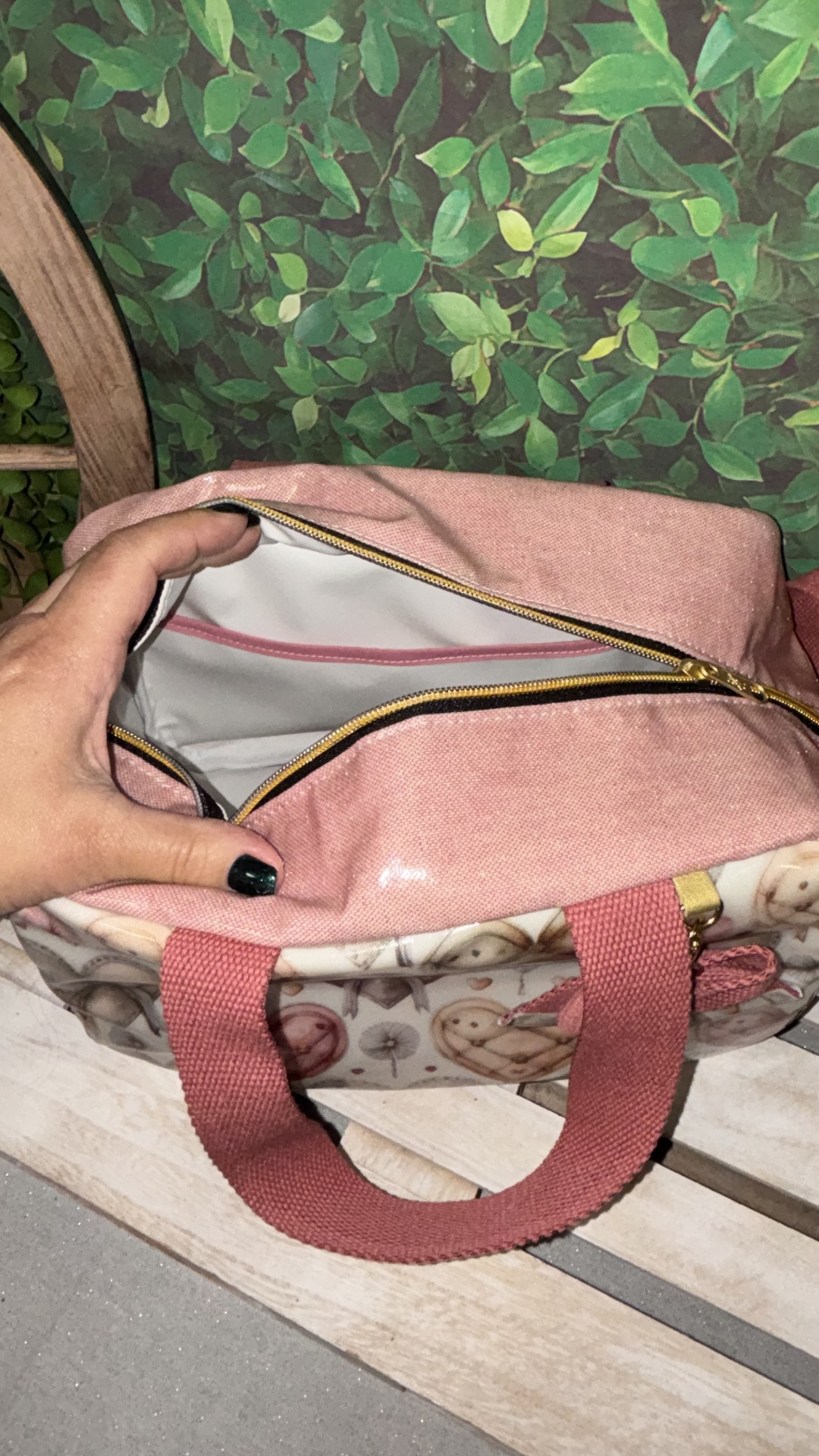 Lancheira Sandy 31,50 € Desconto de %. Partilhar Comprar Contactar 2 unidades em stock | SKU: LS101 Lancheira Sandy Térmicas e plastificadas no exterior e interior Alça de mão e de ombro Bolso no interior Medidas: 28x15x19 (8 Litros) Produto Artesanal Marca Bucadu com Amor Tags lancheirastérmicaAdulto