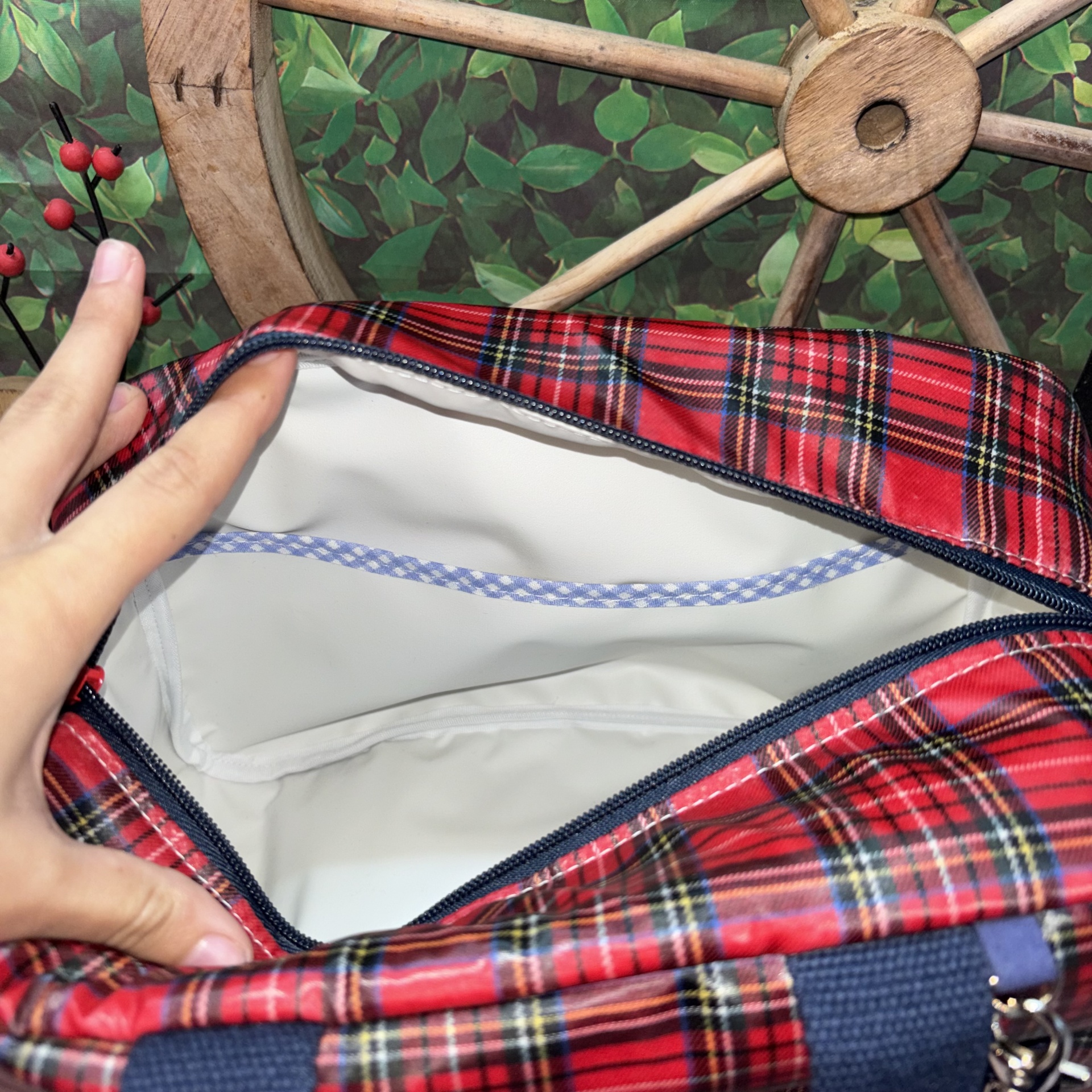 Lancheira Sandy 31,50 € Desconto de %. Partilhar Comprar Contactar 0 unidades em stock | SKU: LS111 Lancheira Sandy Térmicas e Plastificadas no Exterior e Interior Alça de Mão e de Ombro Bolso no Interior Xarez, Vermelho, Alça Azul Escura Medidas: 28x15x19 (8 Litros) Produto Artesanal Marca Bucadu com Amor Tags lancheirastérmicaAdultoXadrez