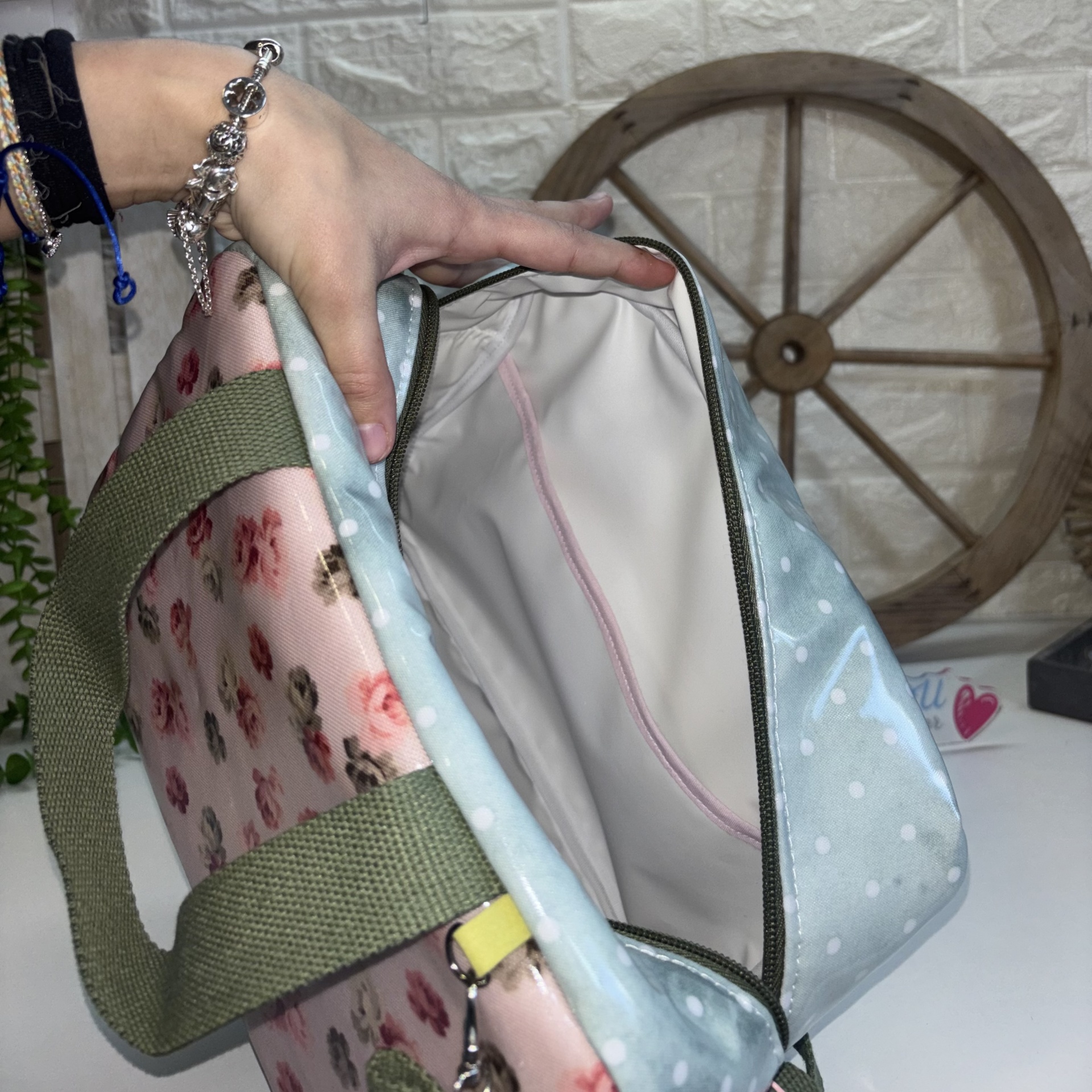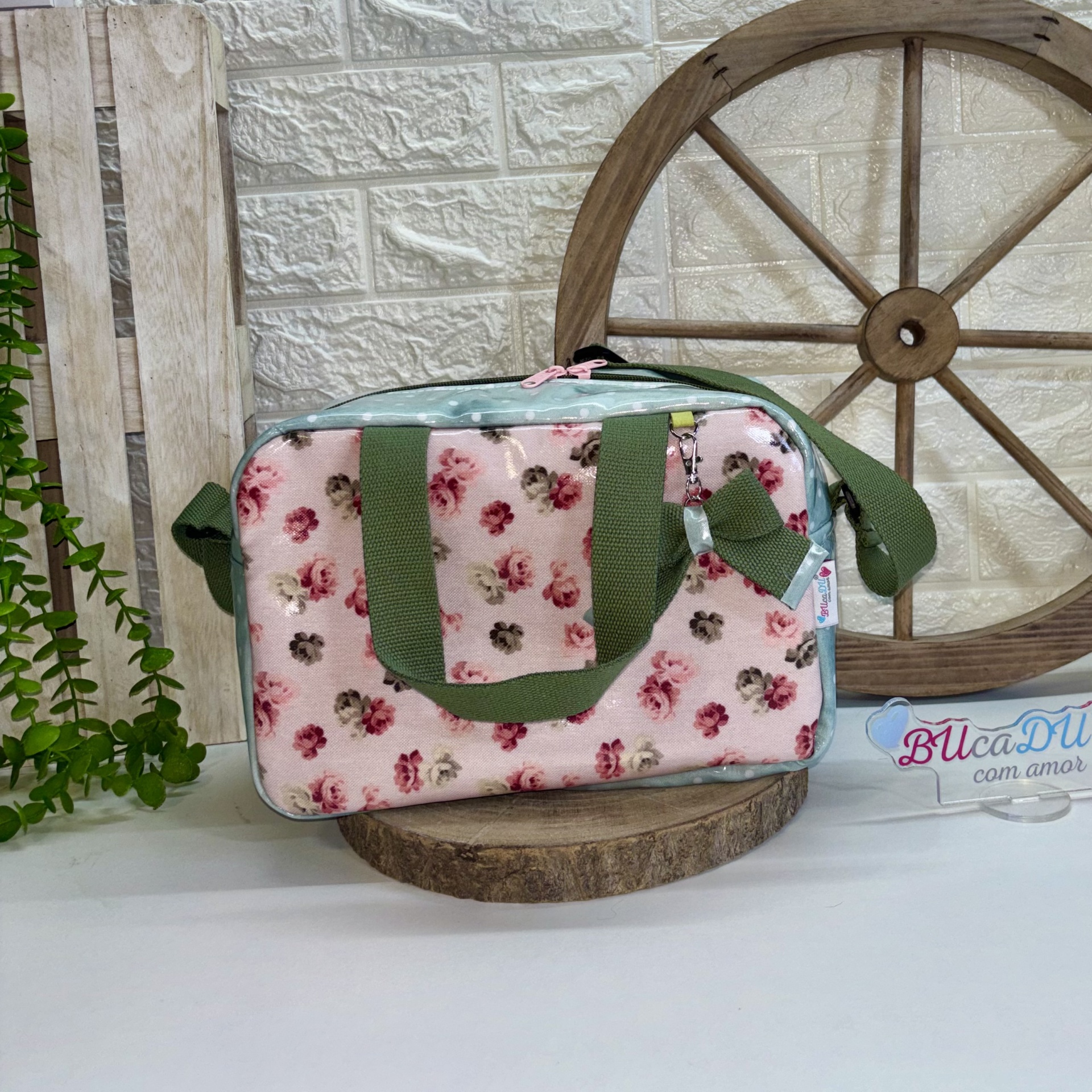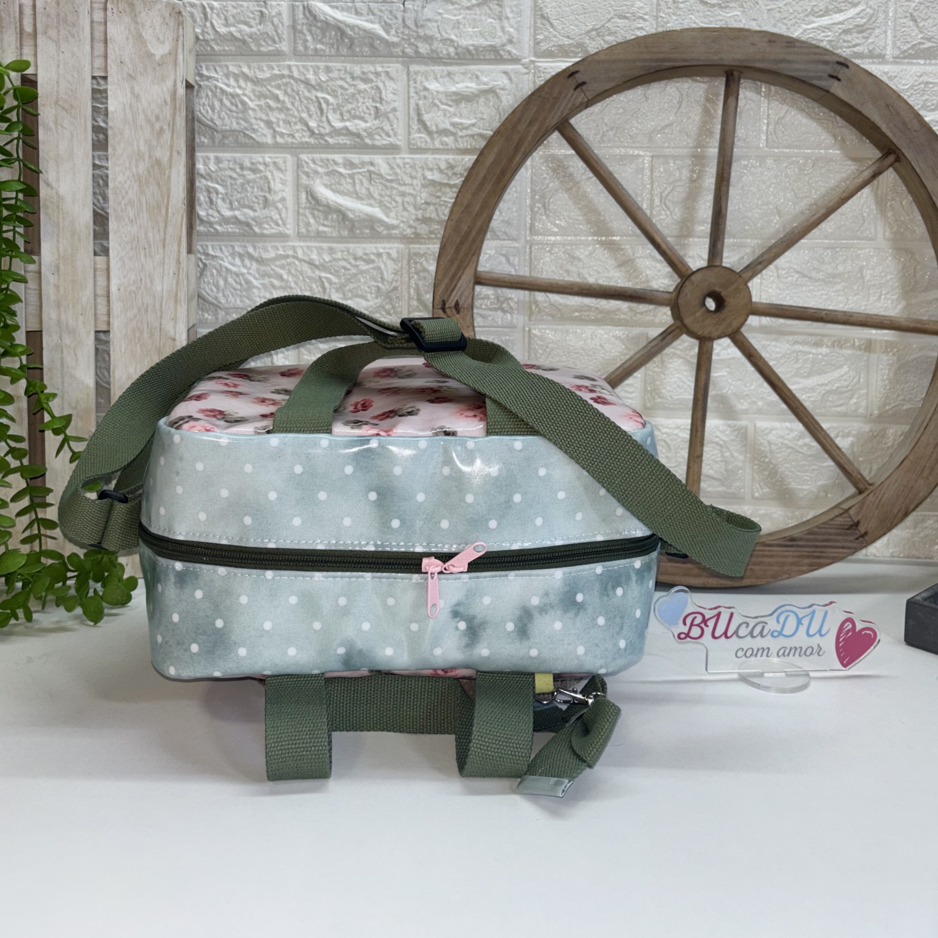 Lancheira Sandy 31,50 € Desconto de %. Partilhar Comprar Contactar 1 unidades em stock | SKU: LS113 Lancheira Sandy Térmicas e Plastificadas no Exterior e Interior Alça de Mão e de Ombro Bolso no Interior Flores, Verde Bolas Brancas, Alça Verde Tropa Medidas: 28x15x19 (8 Litros) Produto Artesanal Marca Bucadu com Amor Tags lancheirastérmicaFloresVerdeRosa Características