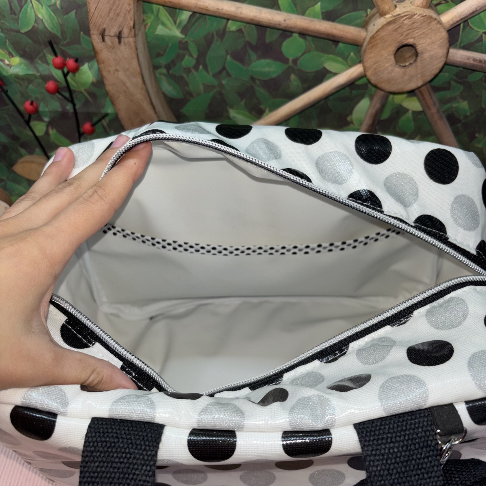 Lancheira Sandy 31,50 € Desconto de %. Partilhar Comprar Contactar 1 unidades em stock | SKU: LS108 Lancheira Sandy Térmicas e Plastificadas no Exterior e Interior Alça de Mão e de Ombro Bolso no Interior Verde Água Risca e Pintas, Alça Creme Medidas: 28x15x19 (8 Litros) Produto Artesanal Marca Bucadu com Amor Tags lancheirascriançaAdultotérmica