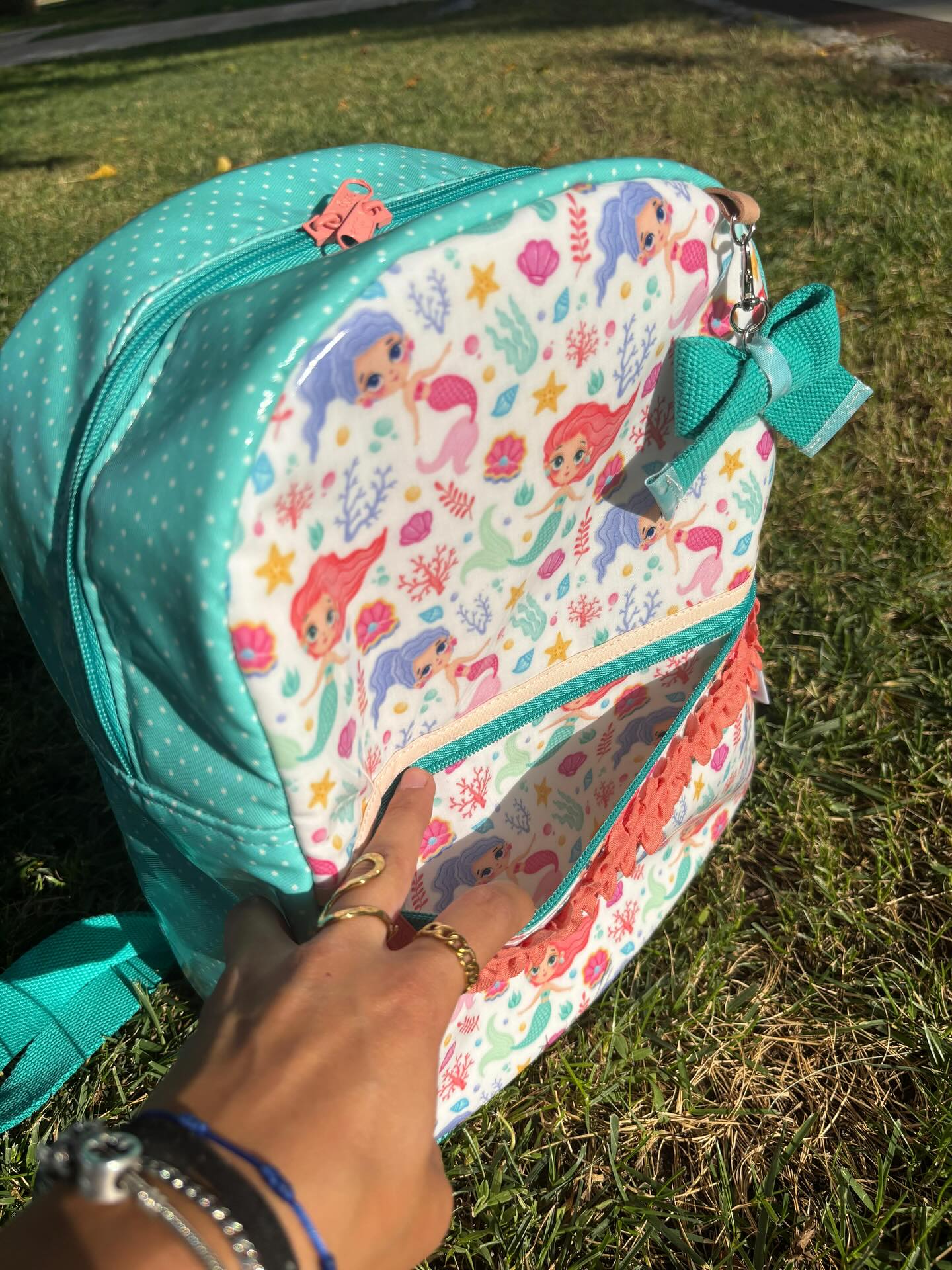 Mochila Média - Sereias 42,00 € Desconto de %. Partilhar Comprar Contactar 1 unidades em stock | SKU: MM101 Mochila Média Térmica - Sereias Ideal para a escola ou passeios em familia. Material plastificado com estampa de sereias e verde água com pintas brancas. Forro impermeável, fácil de limpar. Medidas: 25x14x34 Produto artesanal Marca Bucadu com Amor Tags Sereiaverde-águatérmicamochilas