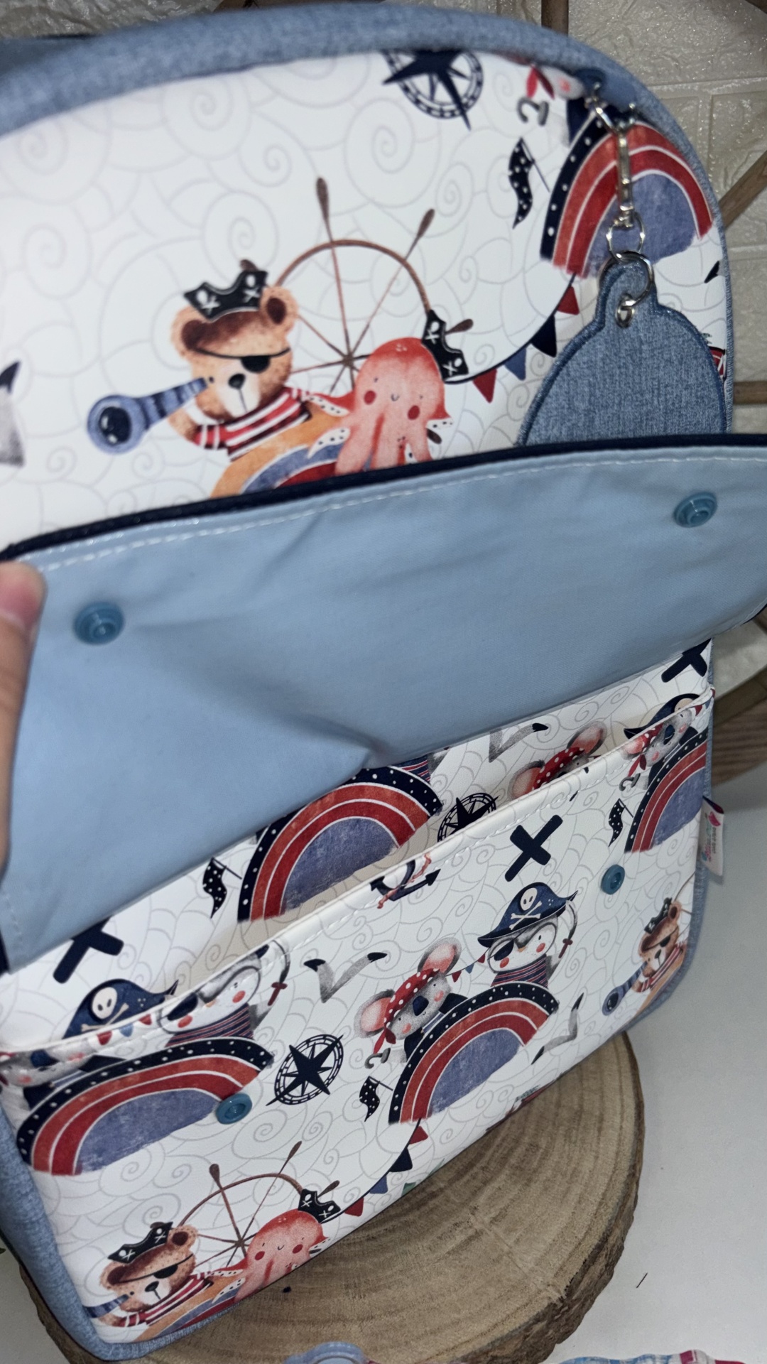 Mochila Média 42,00 € Desconto de %. Partilhar Comprar Contactar 1 unidades em stock | SKU: MM103 Mochila Média Térmica Piratas Ideal para a escola ou passeios em familia. Material Exterior Napa Piratas, Azul Ganga Forro impermeável, fácil de limpar. Bolso Frontal, Bolso Interior e Elástico para Garrafa. Medidas: 25x14x34 Possiblidade de Bordar Nome na Aba do Bolso Frontal Produto artesanal Marca Bucadu com Amor Tags AzulBebéMaternidademeninomochilamochilasNapaPersonalizaçãoPiratas