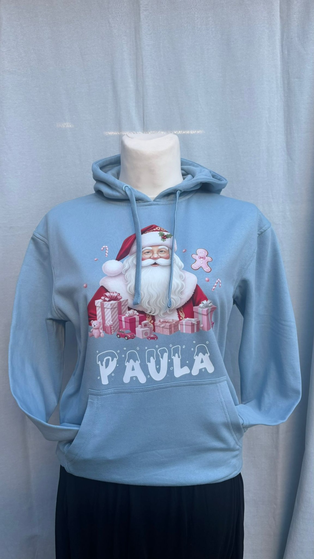 Sweatshirt azul clara com estampa de Pai Natal e nome PAULA